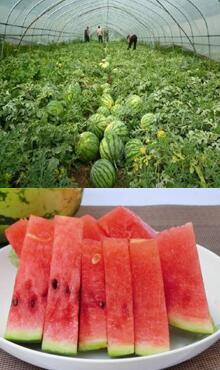 西瓜是夏季之水果,在全國各地都有栽培,果實大型,近于球形或橢圓形,肉質,多汁,果皮光滑,色澤及紋飾各式。種子多數,卵形,黑色、紅色,兩面平滑,基部鈍圓,通常邊緣稍拱起,花果期夏季。西瓜堪稱“盛夏之王”,清爽解渴,味道甘味多汁,具有降溫去暑,清熱、利尿、降血壓之效。